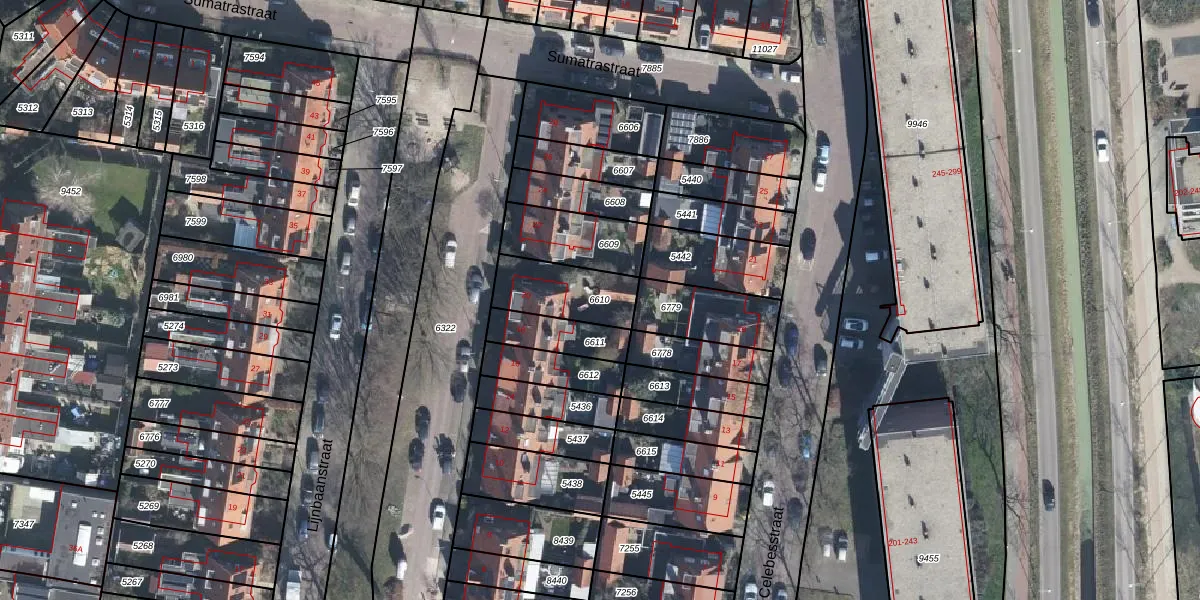 Gebruik de zoekbalk of klik op een perceel om informatie over het perceel te bekijken.