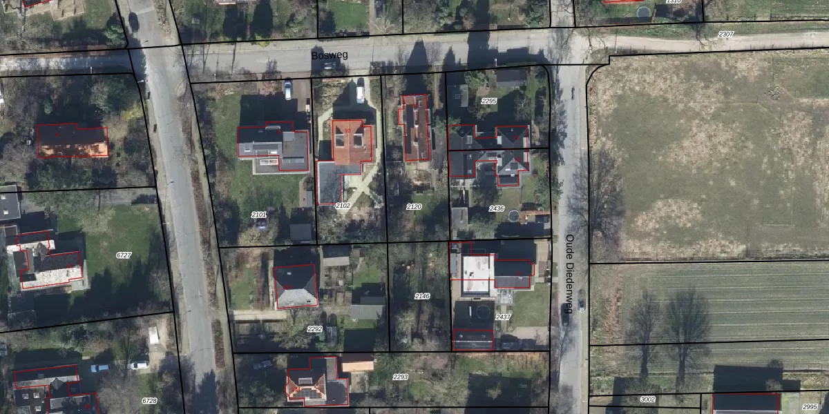 Gebruik de zoekbalk of klik op een perceel om informatie over het perceel te bekijken.