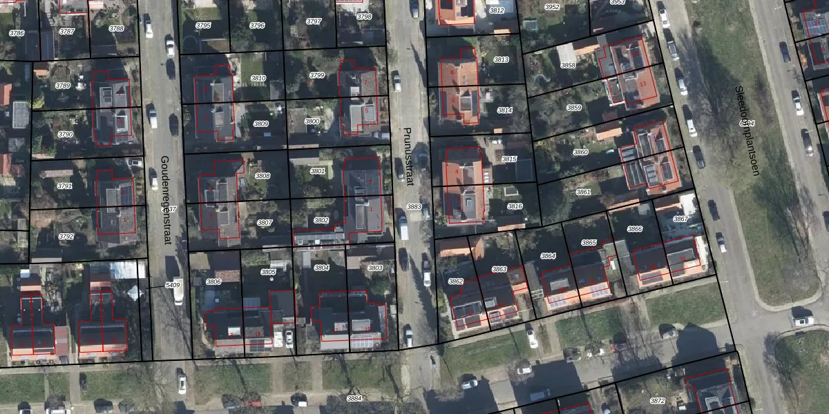 Gebruik de zoekbalk of klik op een perceel om informatie over het perceel te bekijken.