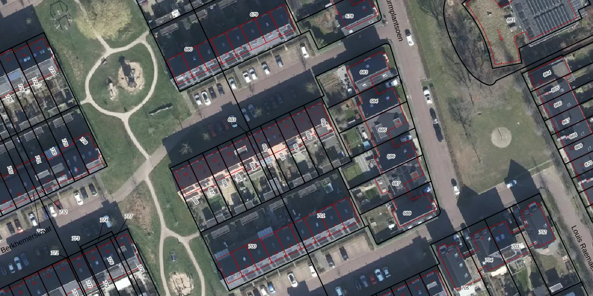 Gebruik de zoekbalk of klik op een perceel om informatie over het perceel te bekijken.
