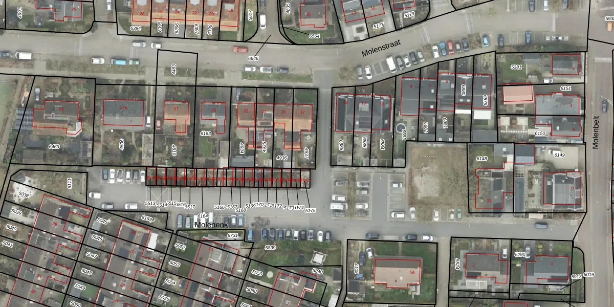 Gebruik de zoekbalk of klik op een perceel om informatie over het perceel te bekijken.