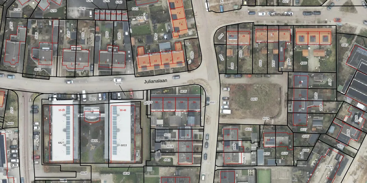 Gebruik de zoekbalk of klik op een perceel om informatie over het perceel te bekijken.