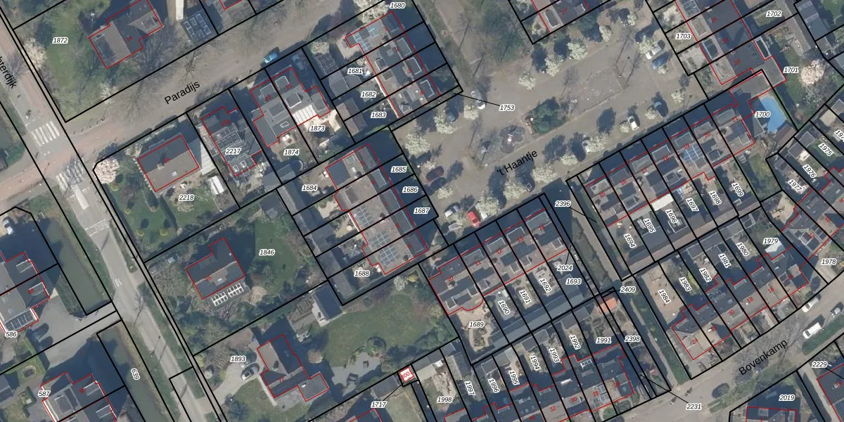 Gebruik de zoekbalk of klik op een perceel om informatie over het perceel te bekijken.