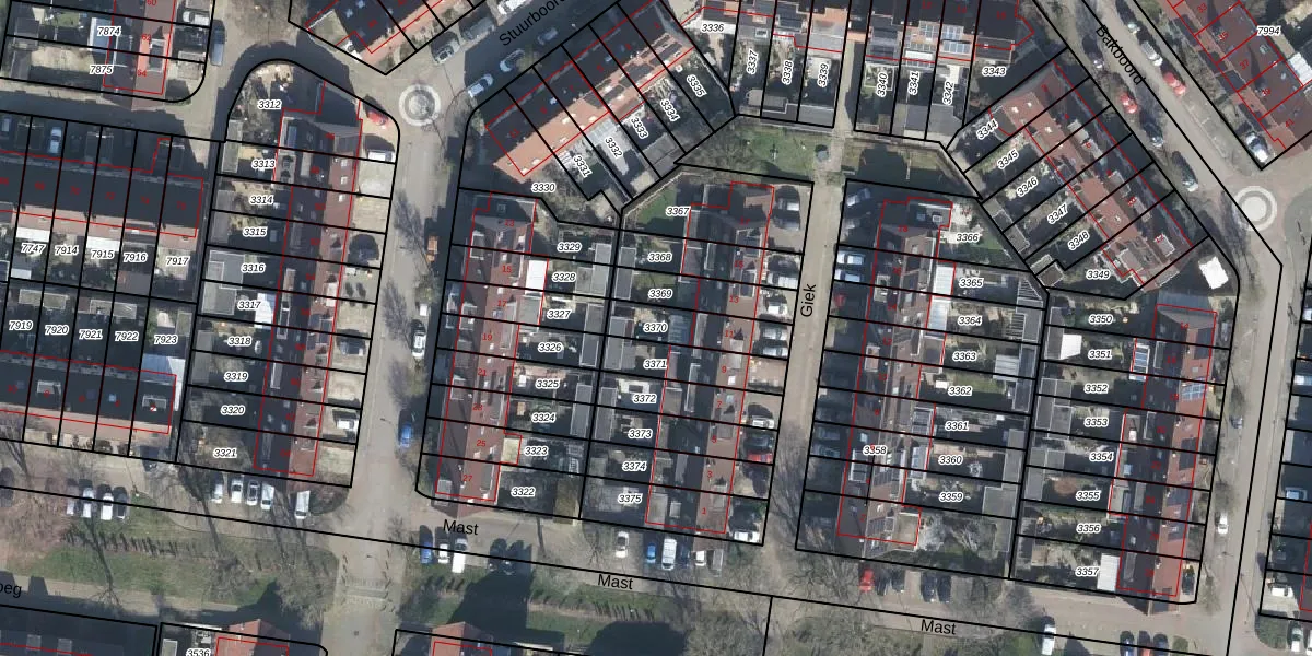 Gebruik de zoekbalk of klik op een perceel om informatie over het perceel te bekijken.