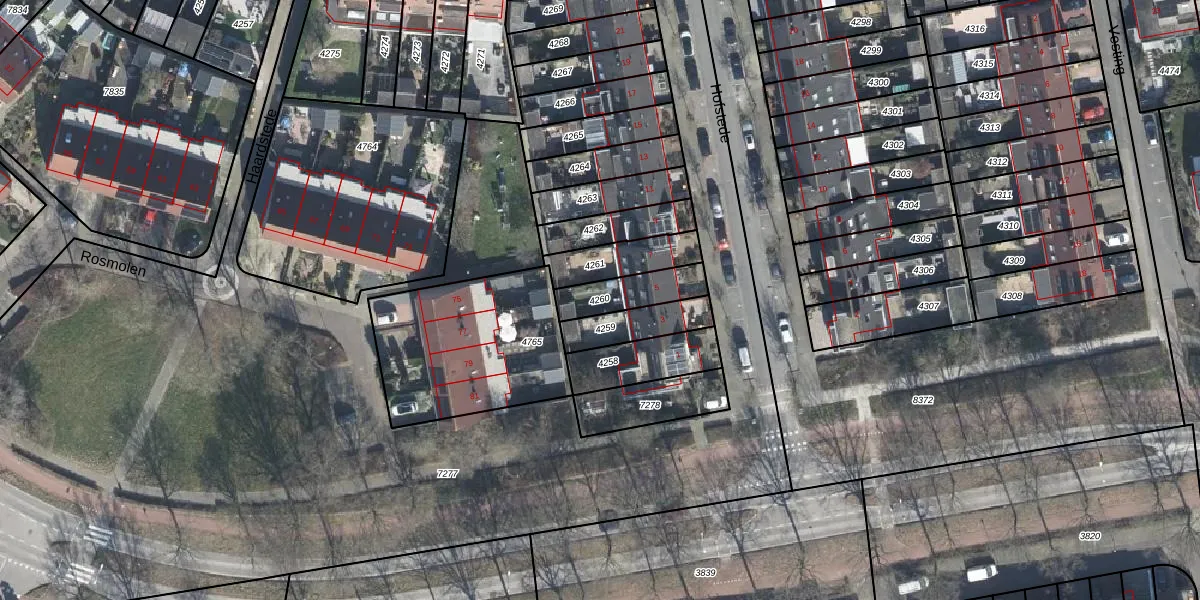 Gebruik de zoekbalk of klik op een perceel om informatie over het perceel te bekijken.