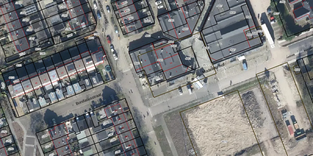 Gebruik de zoekbalk of klik op een perceel om informatie over het perceel te bekijken.