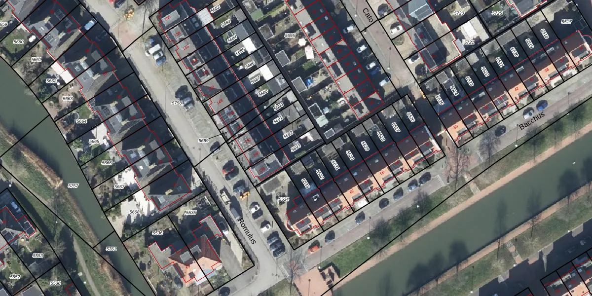 Gebruik de zoekbalk of klik op een perceel om informatie over het perceel te bekijken.