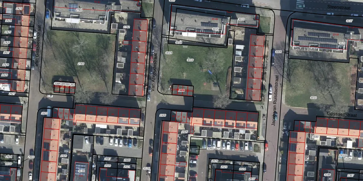 Gebruik de zoekbalk of klik op een perceel om informatie over het perceel te bekijken.