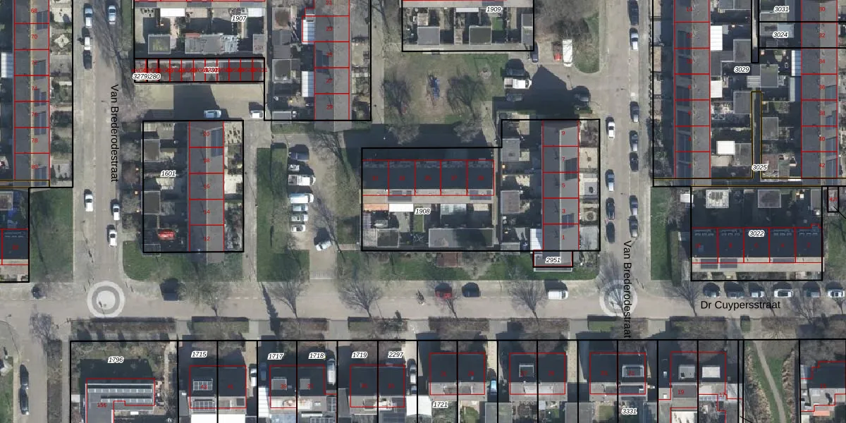 Gebruik de zoekbalk of klik op een perceel om informatie over het perceel te bekijken.