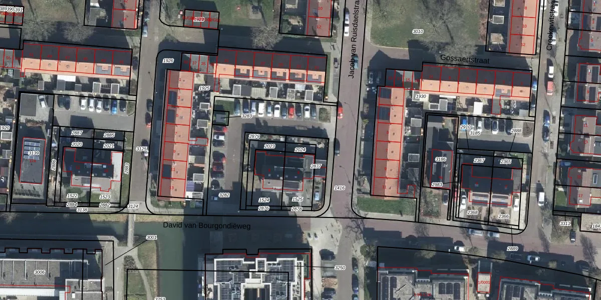 Gebruik de zoekbalk of klik op een perceel om informatie over het perceel te bekijken.