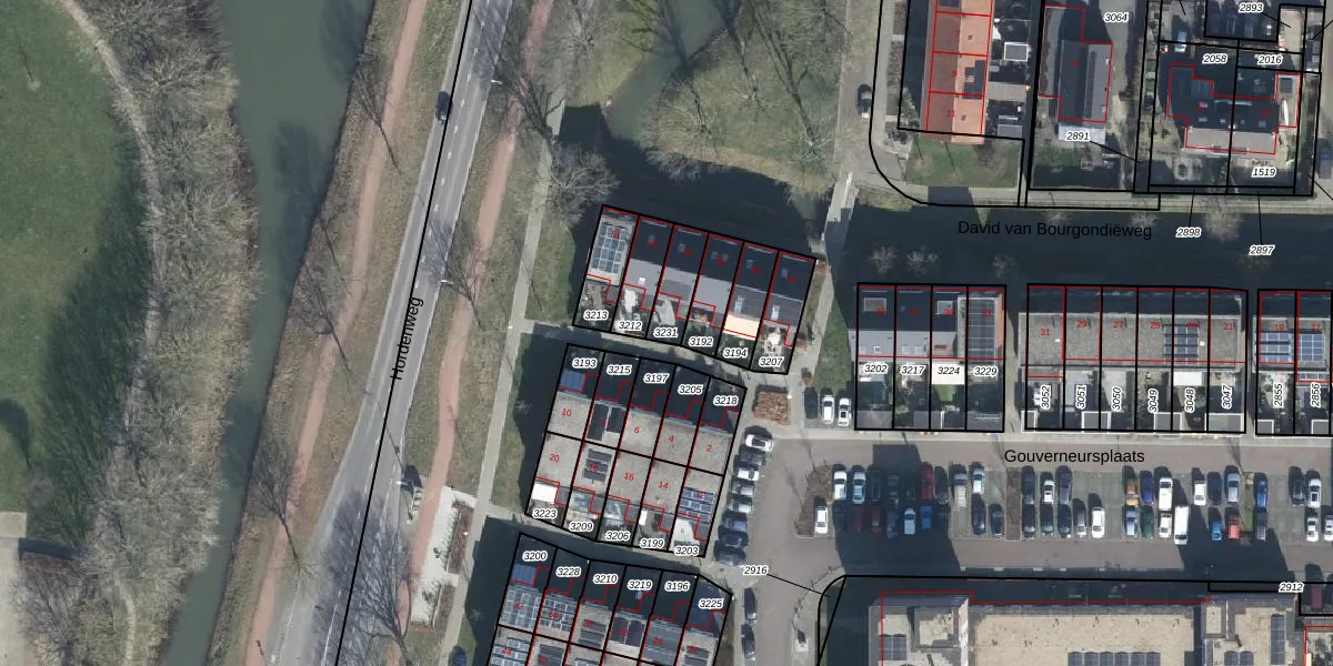 Gebruik de zoekbalk of klik op een perceel om informatie over het perceel te bekijken.