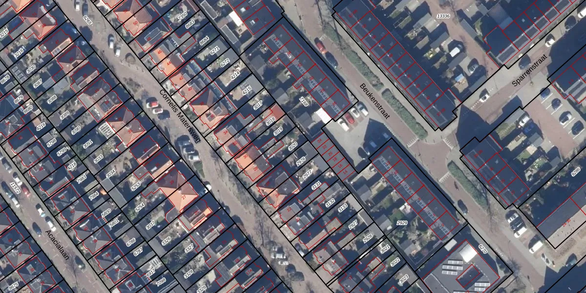 Gebruik de zoekbalk of klik op een perceel om informatie over het perceel te bekijken.
