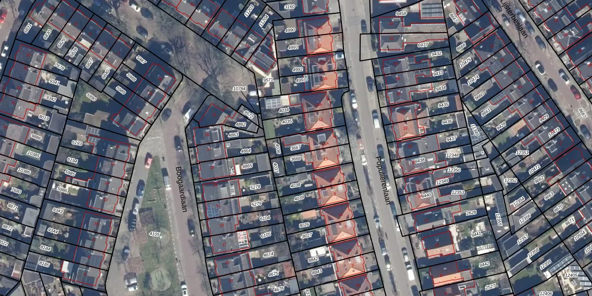 Gebruik de zoekbalk of klik op een perceel om informatie over het perceel te bekijken.