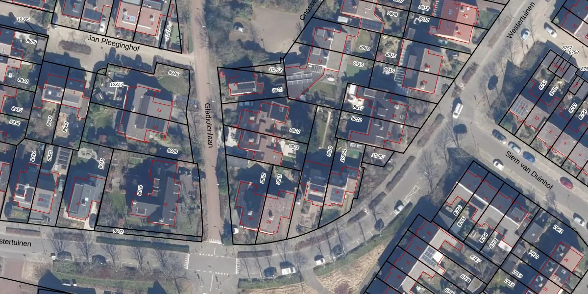 Gebruik de zoekbalk of klik op een perceel om informatie over het perceel te bekijken.