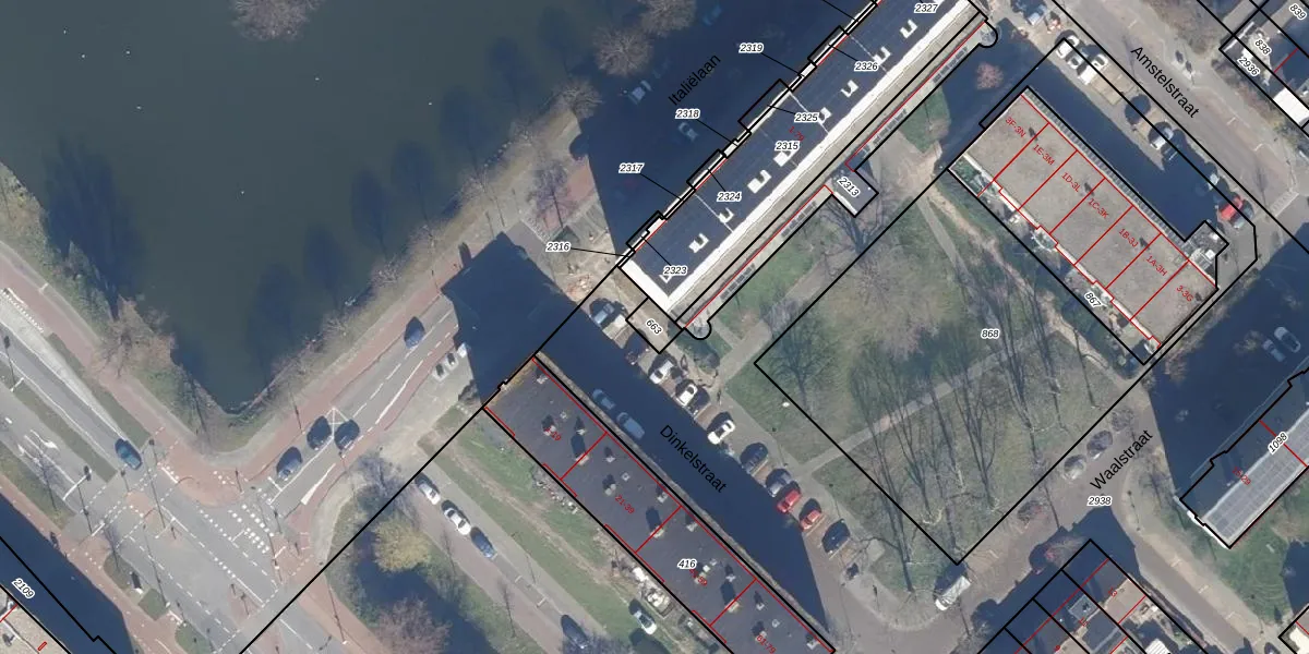 Gebruik de zoekbalk of klik op een perceel om informatie over het perceel te bekijken.
