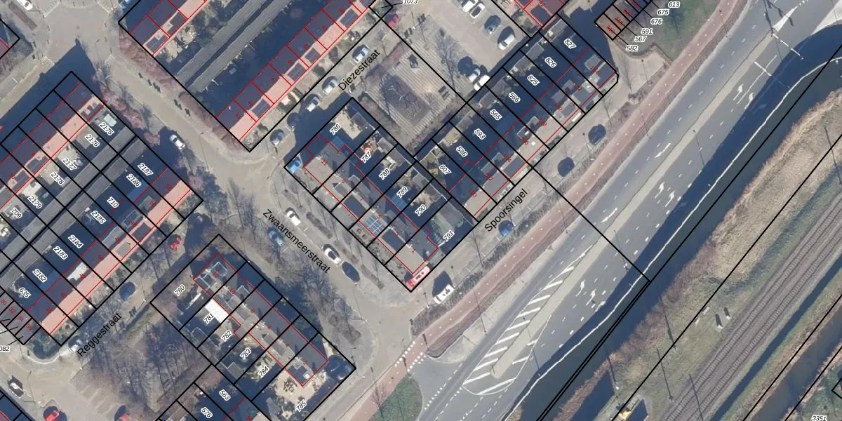 Gebruik de zoekbalk of klik op een perceel om informatie over het perceel te bekijken.