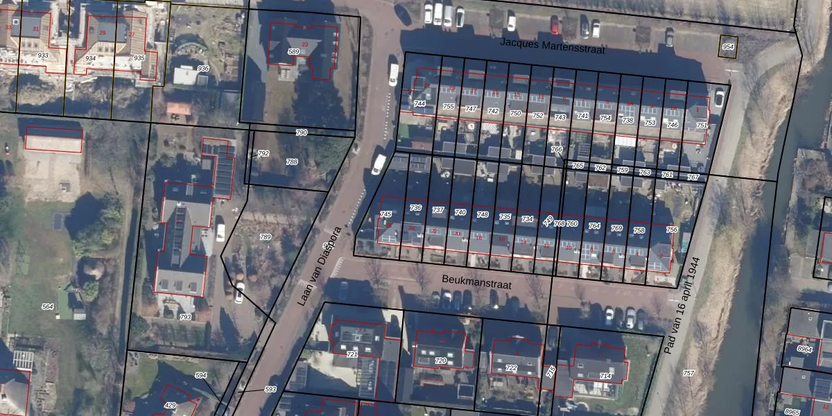 Gebruik de zoekbalk of klik op een perceel om informatie over het perceel te bekijken.