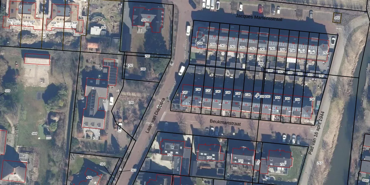 Gebruik de zoekbalk of klik op een perceel om informatie over het perceel te bekijken.