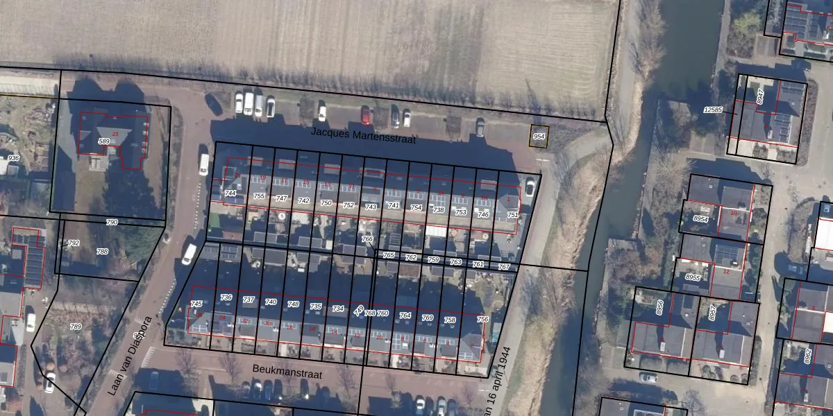 Gebruik de zoekbalk of klik op een perceel om informatie over het perceel te bekijken.