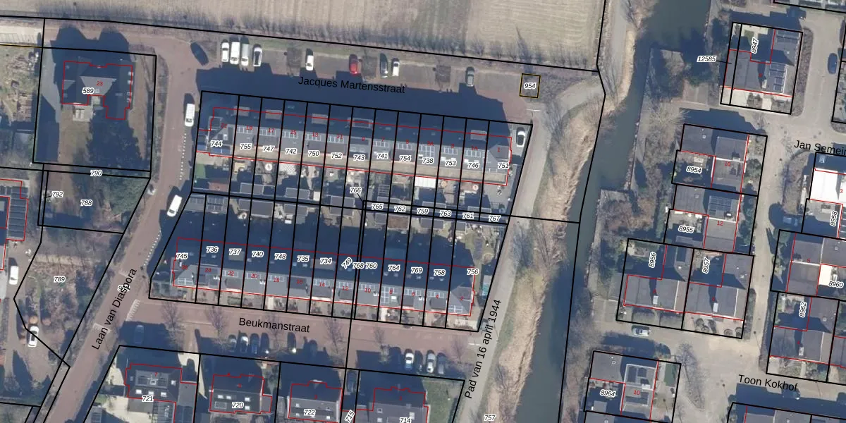 Gebruik de zoekbalk of klik op een perceel om informatie over het perceel te bekijken.