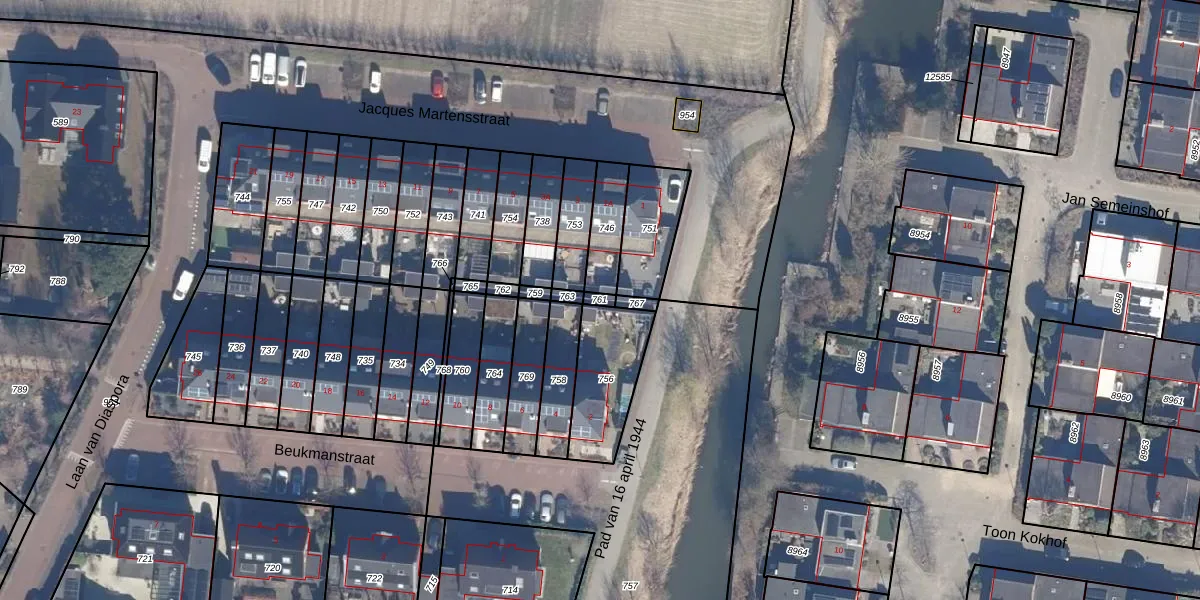 Gebruik de zoekbalk of klik op een perceel om informatie over het perceel te bekijken.