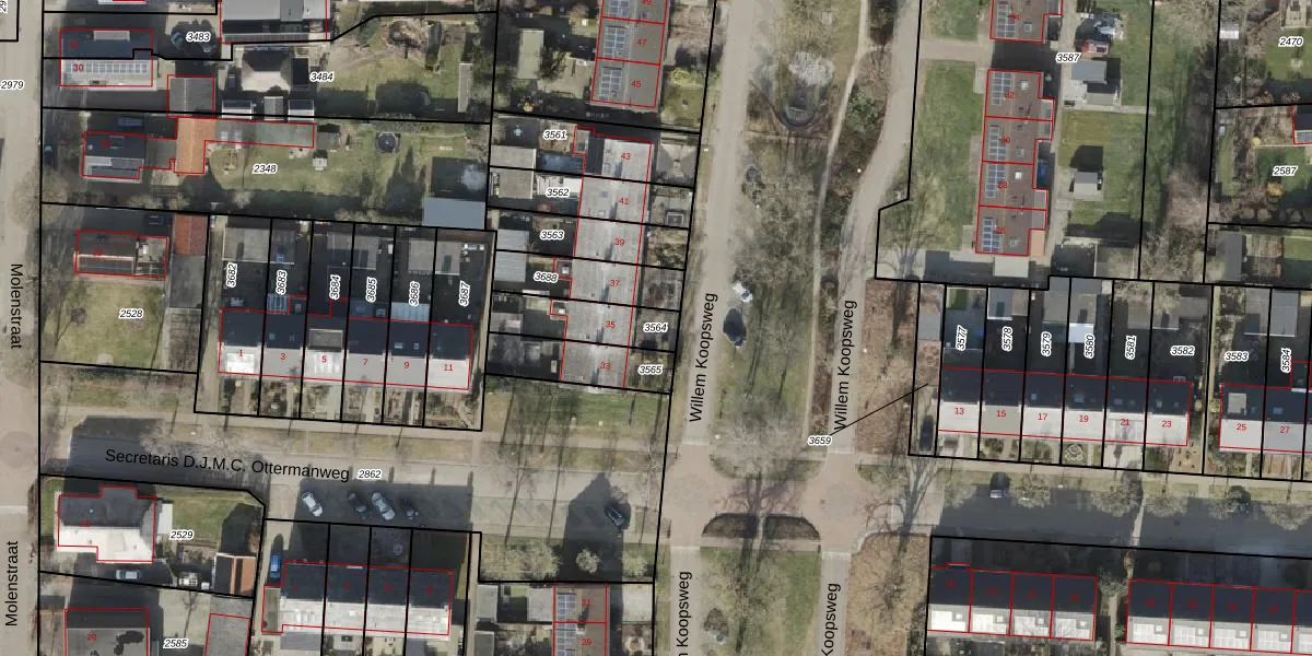 Gebruik de zoekbalk of klik op een perceel om informatie over het perceel te bekijken.