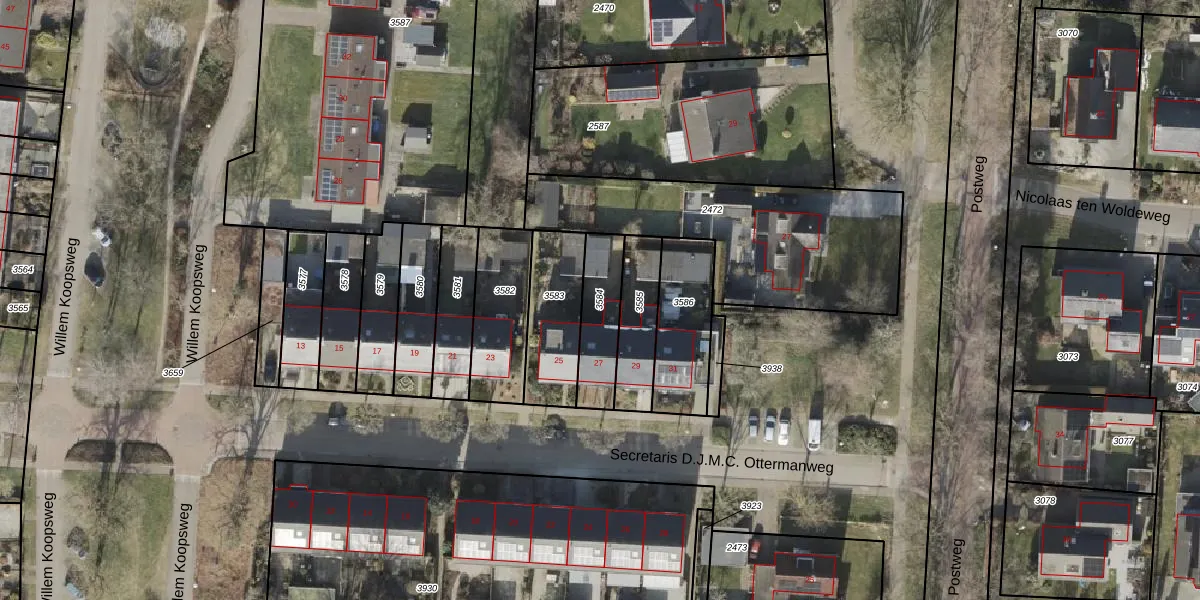 Gebruik de zoekbalk of klik op een perceel om informatie over het perceel te bekijken.