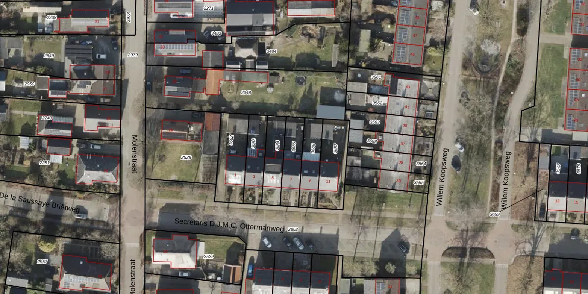 Gebruik de zoekbalk of klik op een perceel om informatie over het perceel te bekijken.