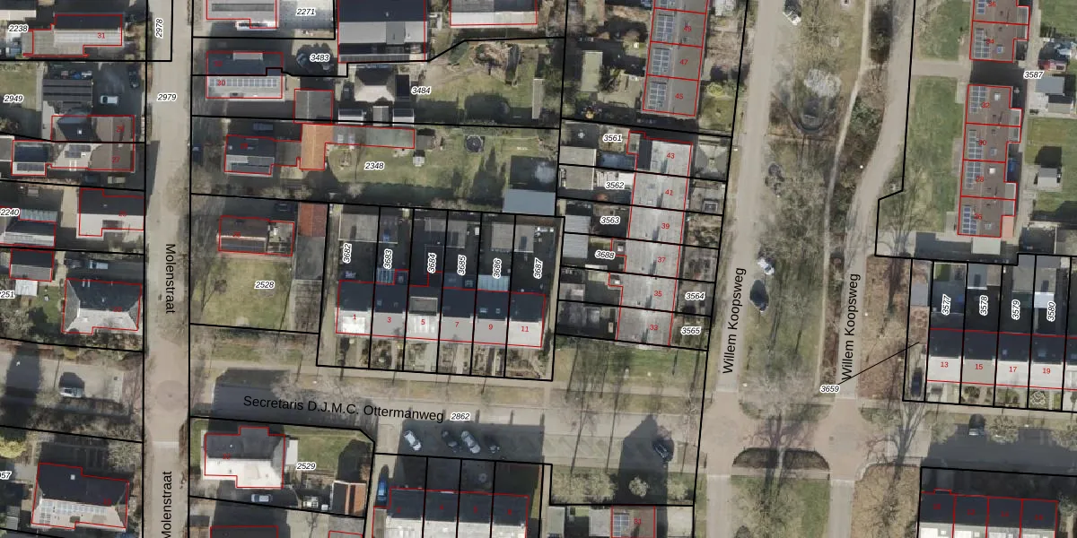Gebruik de zoekbalk of klik op een perceel om informatie over het perceel te bekijken.