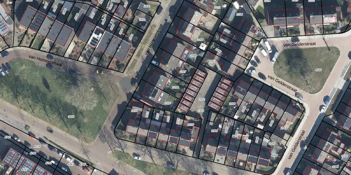 Gebruik de zoekbalk of klik op een perceel om informatie over het perceel te bekijken.