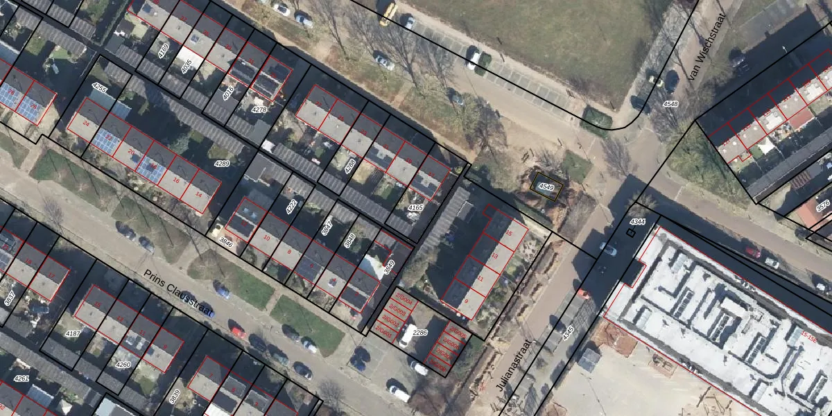 Gebruik de zoekbalk of klik op een perceel om informatie over het perceel te bekijken.