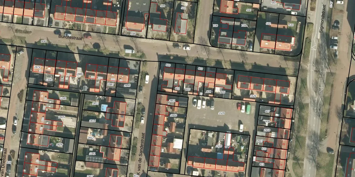 Gebruik de zoekbalk of klik op een perceel om informatie over het perceel te bekijken.