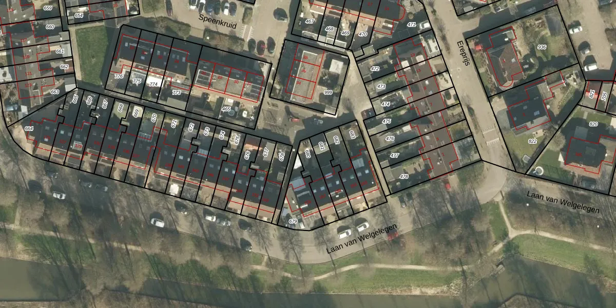 Gebruik de zoekbalk of klik op een perceel om informatie over het perceel te bekijken.