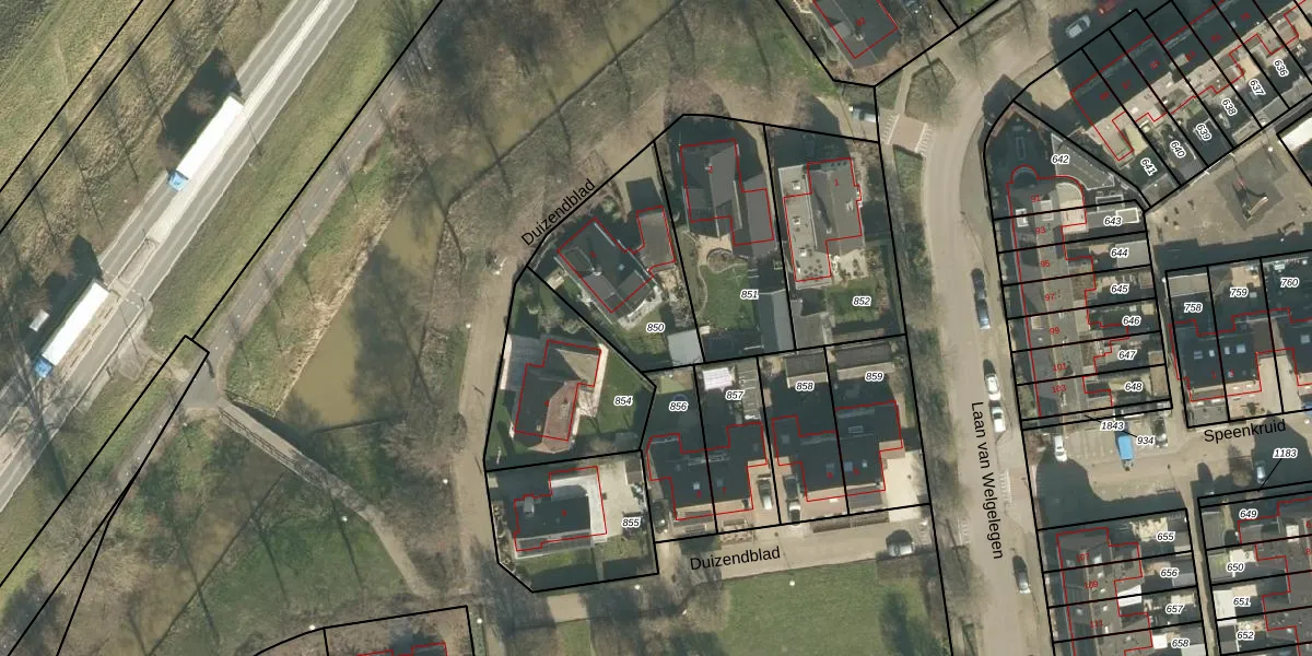 Gebruik de zoekbalk of klik op een perceel om informatie over het perceel te bekijken.
