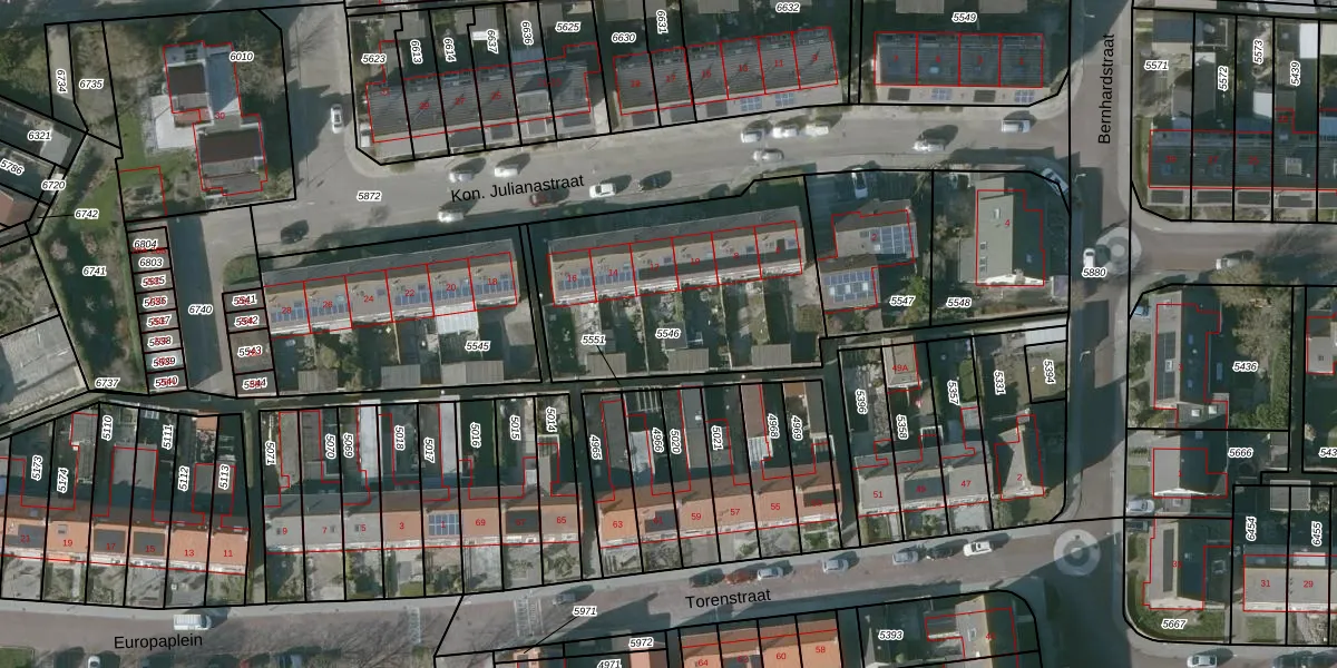 Gebruik de zoekbalk of klik op een perceel om informatie over het perceel te bekijken.