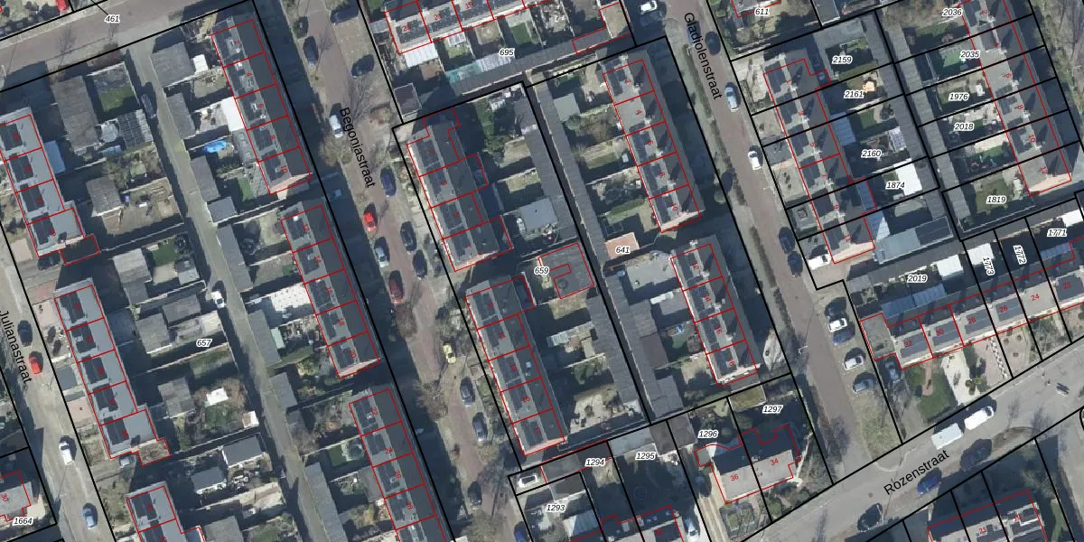 Gebruik de zoekbalk of klik op een perceel om informatie over het perceel te bekijken.