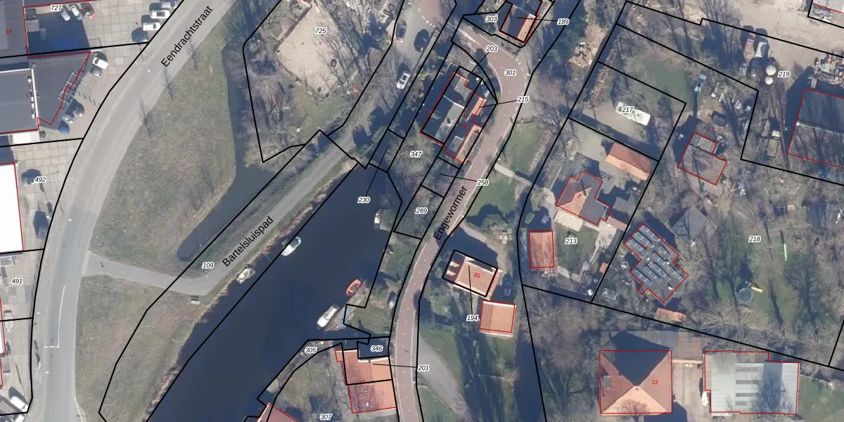 Gebruik de zoekbalk of klik op een perceel om informatie over het perceel te bekijken.