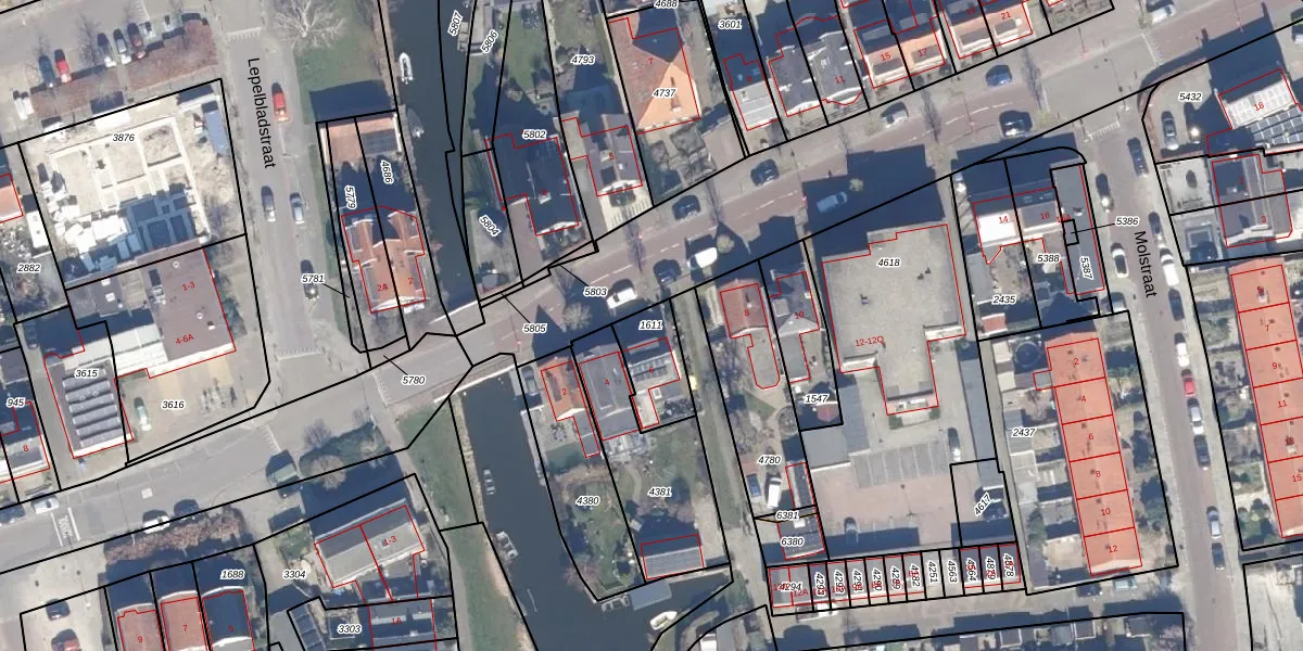Gebruik de zoekbalk of klik op een perceel om informatie over het perceel te bekijken.
