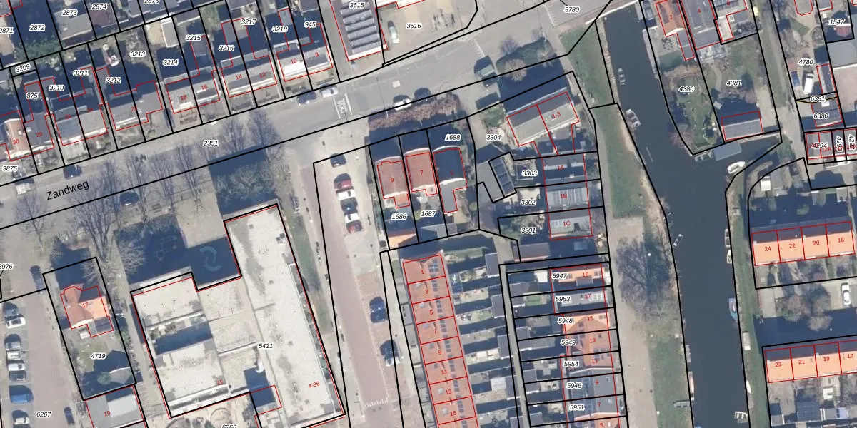 Gebruik de zoekbalk of klik op een perceel om informatie over het perceel te bekijken.