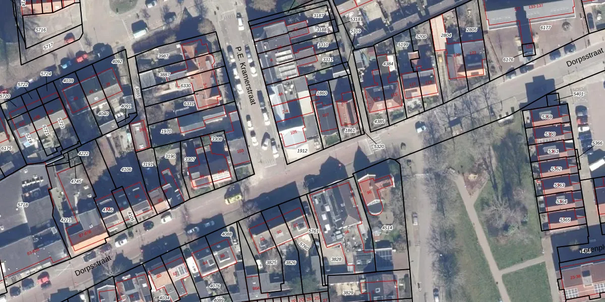 Gebruik de zoekbalk of klik op een perceel om informatie over het perceel te bekijken.