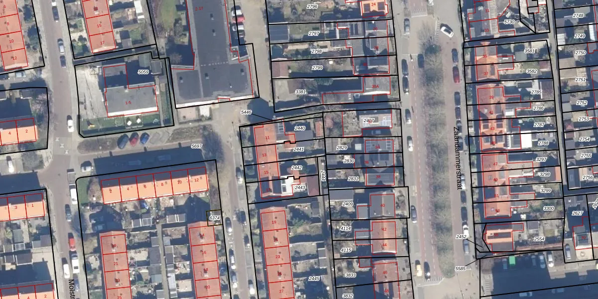 Gebruik de zoekbalk of klik op een perceel om informatie over het perceel te bekijken.