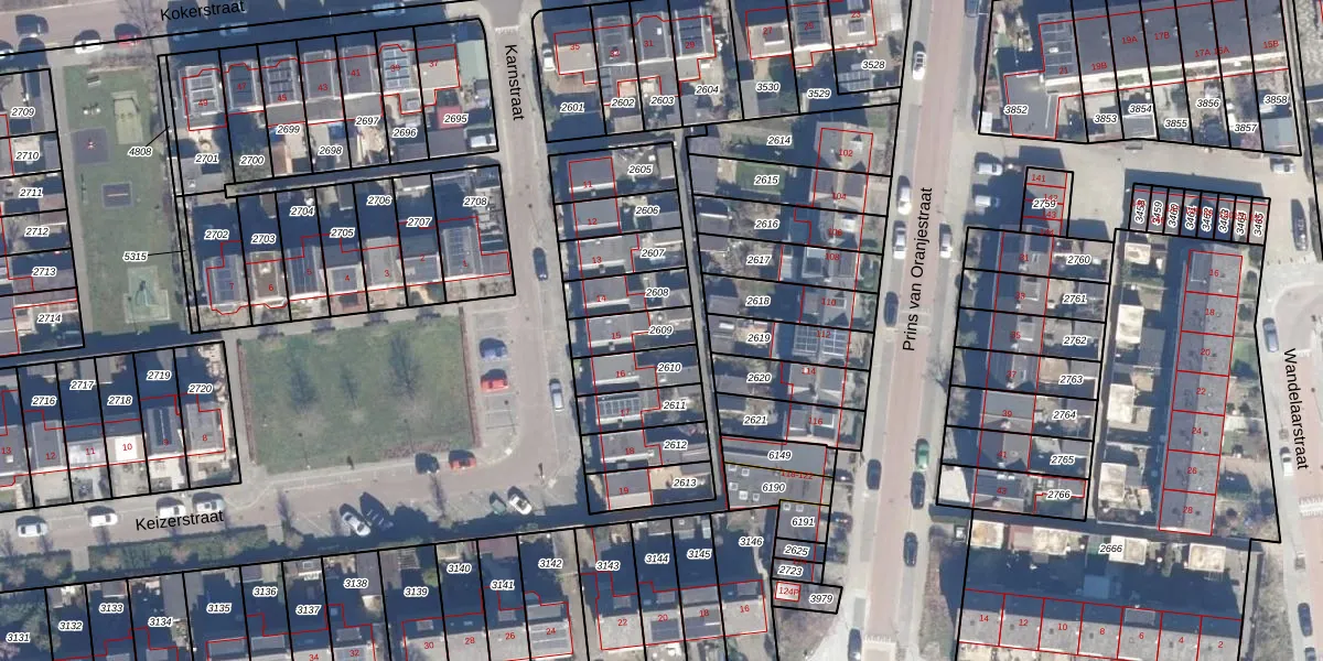 Gebruik de zoekbalk of klik op een perceel om informatie over het perceel te bekijken.