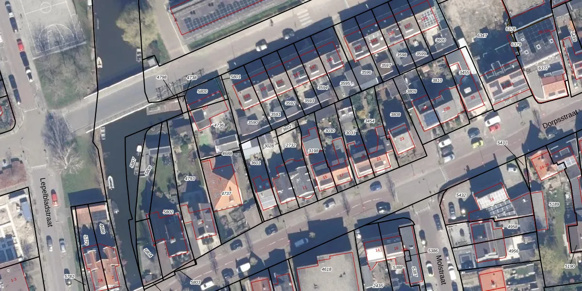 Gebruik de zoekbalk of klik op een perceel om informatie over het perceel te bekijken.