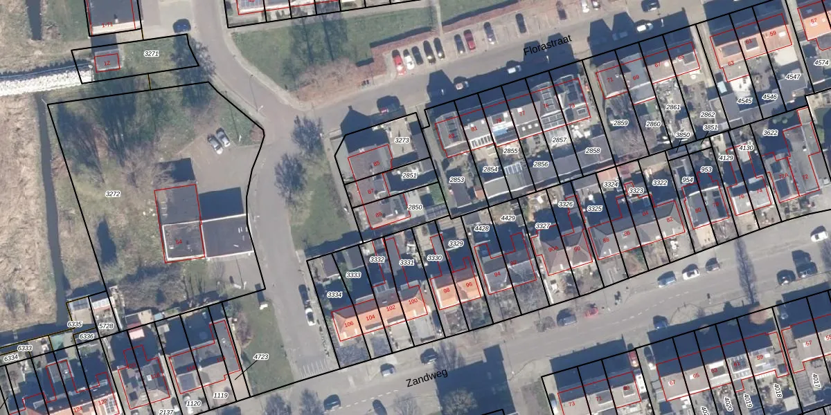 Gebruik de zoekbalk of klik op een perceel om informatie over het perceel te bekijken.