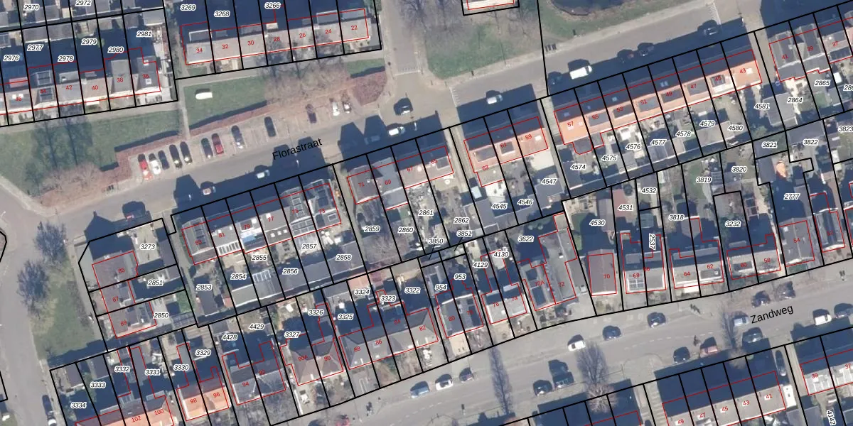 Gebruik de zoekbalk of klik op een perceel om informatie over het perceel te bekijken.