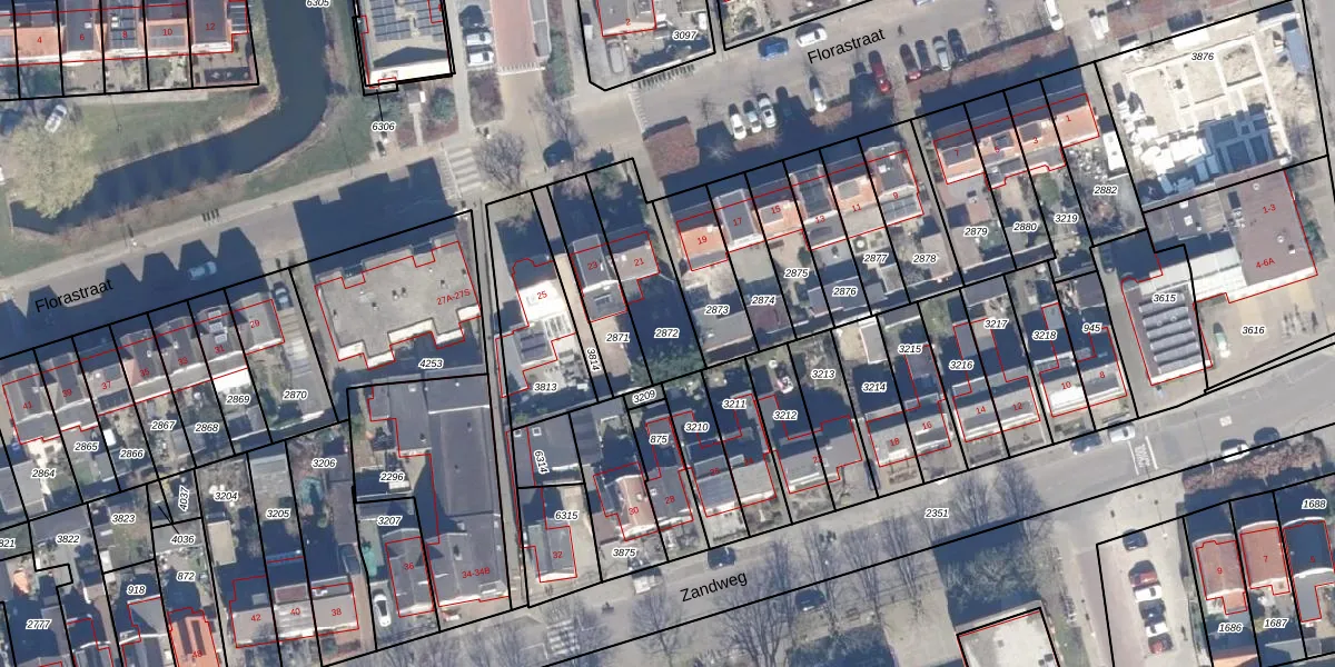 Gebruik de zoekbalk of klik op een perceel om informatie over het perceel te bekijken.