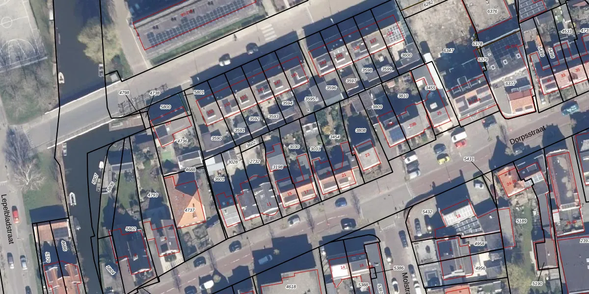 Gebruik de zoekbalk of klik op een perceel om informatie over het perceel te bekijken.
