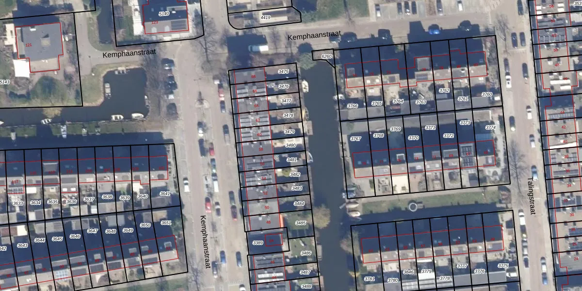 Gebruik de zoekbalk of klik op een perceel om informatie over het perceel te bekijken.