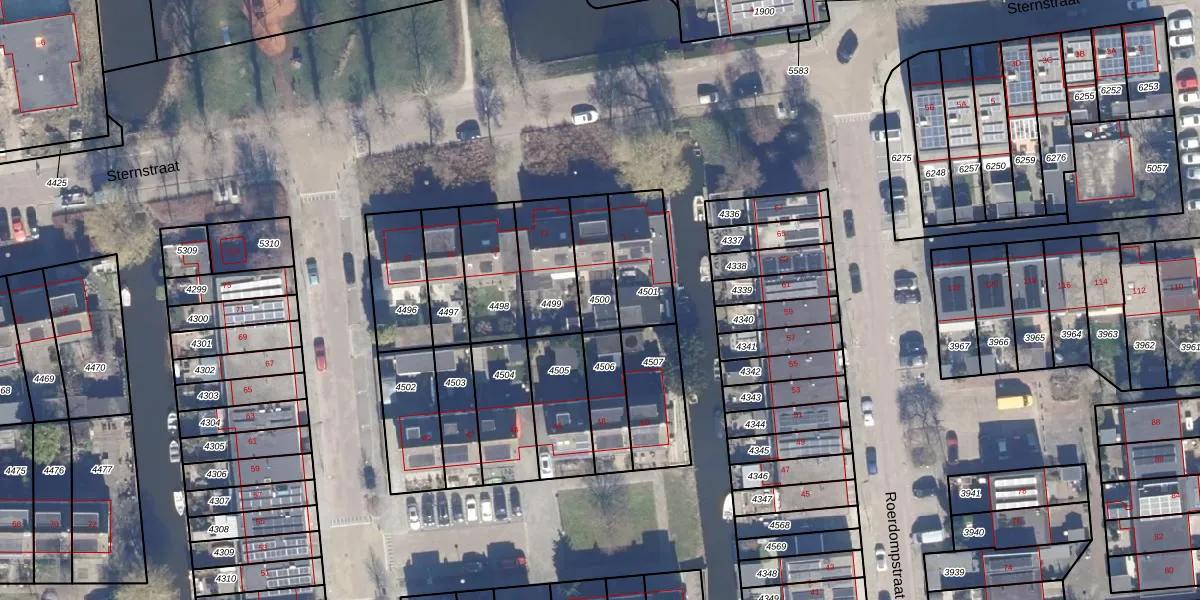 Gebruik de zoekbalk of klik op een perceel om informatie over het perceel te bekijken.