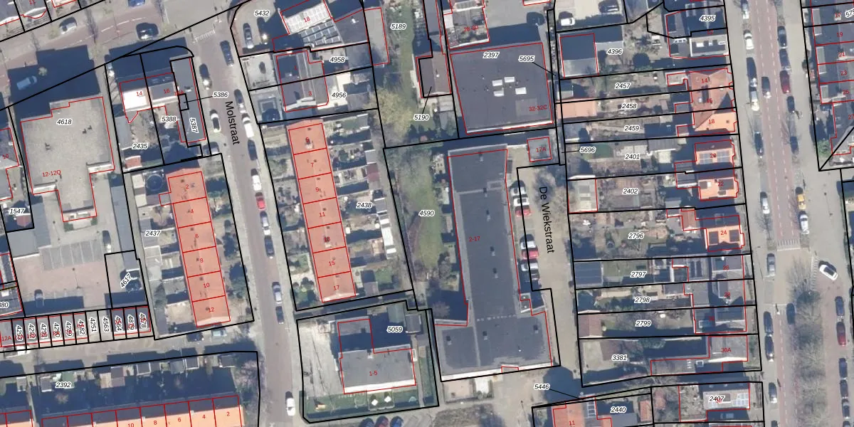 Gebruik de zoekbalk of klik op een perceel om informatie over het perceel te bekijken.